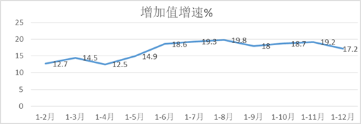 2022年,我市现有的规模以上工业企业99家,共完成总产值213.03亿元,完成销售产值213.16亿 元,同比增长18.0%。产销率100.1%。增加值增长17.2%。增速位列全区第一,较上年同期提高12.5个百分点,高于全区4.2个百分点。