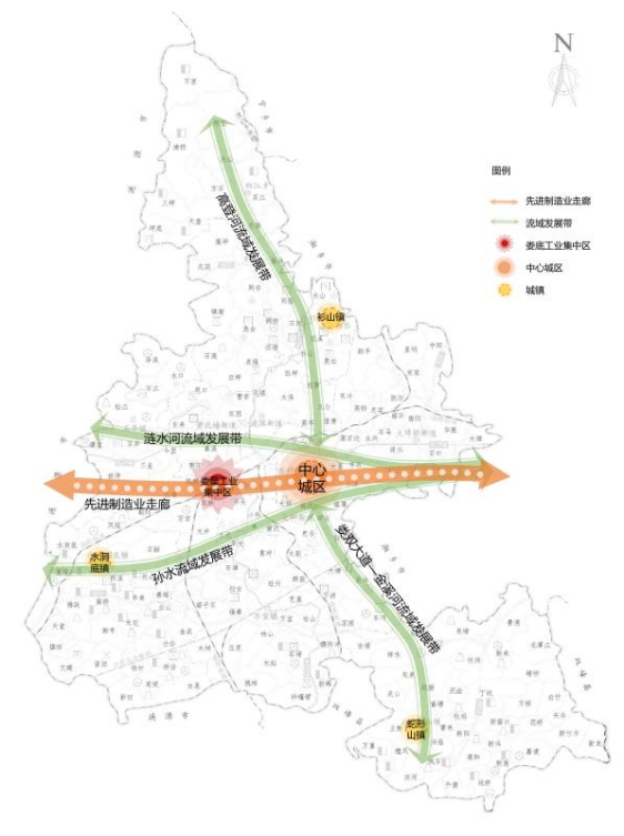 5.一心两核四带:一心,指以娄星工业集中区为发展核心。两核是指以集聚优势资源和高端产业为目标,以万豪城市广场、五江碧桂园商业综合体为发展主体,建设现代商贸发展双核心区域。四带,指以孙水、涟水、高登河、金溪河四条乡村文旅生态带和一二三产业融合发展产业带服务全区宜居宜业宜居游空间。