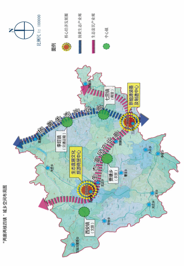 “两廊两核四镇”:两廊即扬黄生态产业廊、生态富民产业廊;两核即海原县城生态宜居文化旅游商贸中心、海兴区新能源装备及制造中心;四镇即李旺交通运输中心镇、七营商贸物流中心镇、西安文旅古镇、贾塘农贸中心镇。