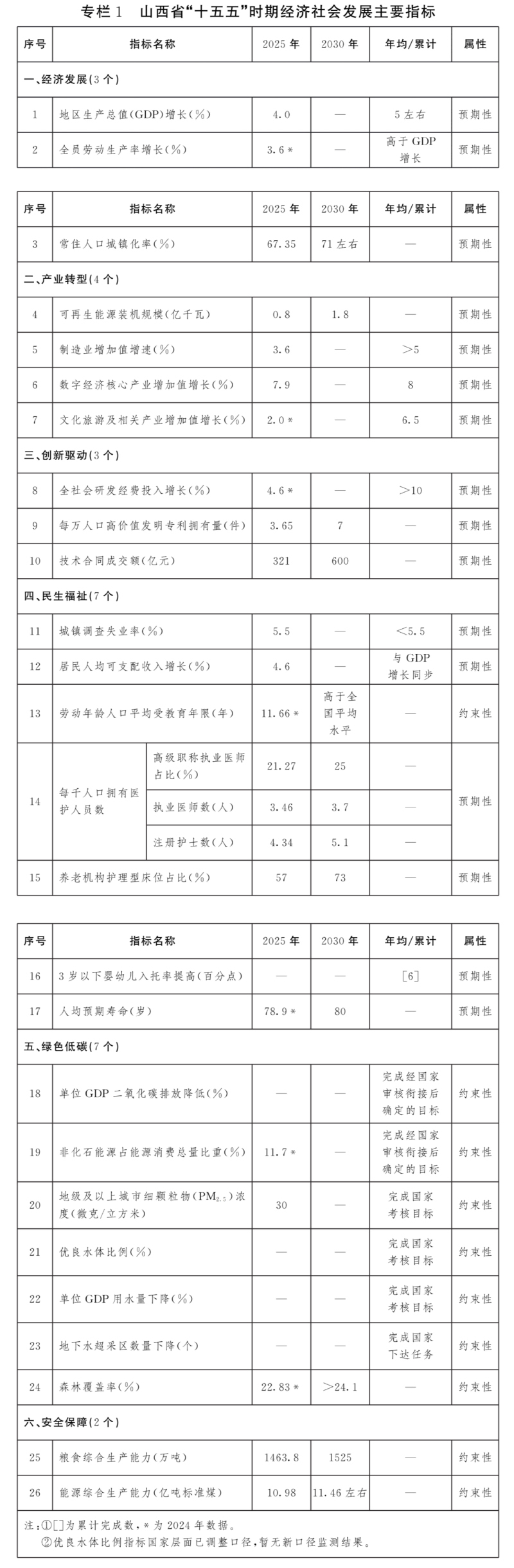 山西省国民经济和社会发展第十五个五年(2026—2030年)规划纲要,根据《中共中央关于制定国民经济和社会发展第十五个五年规划的建议》《中共山西省委关于制定国民经济和社会发展第十五个五年规划的建议》编制,主要阐明我省发展战略,明确政府工作重点,引导规范社会主体行为,是“十五五”时期党委领导经济社会发展、政府履行职责的重要依据,是全省人民共同的行动指南。