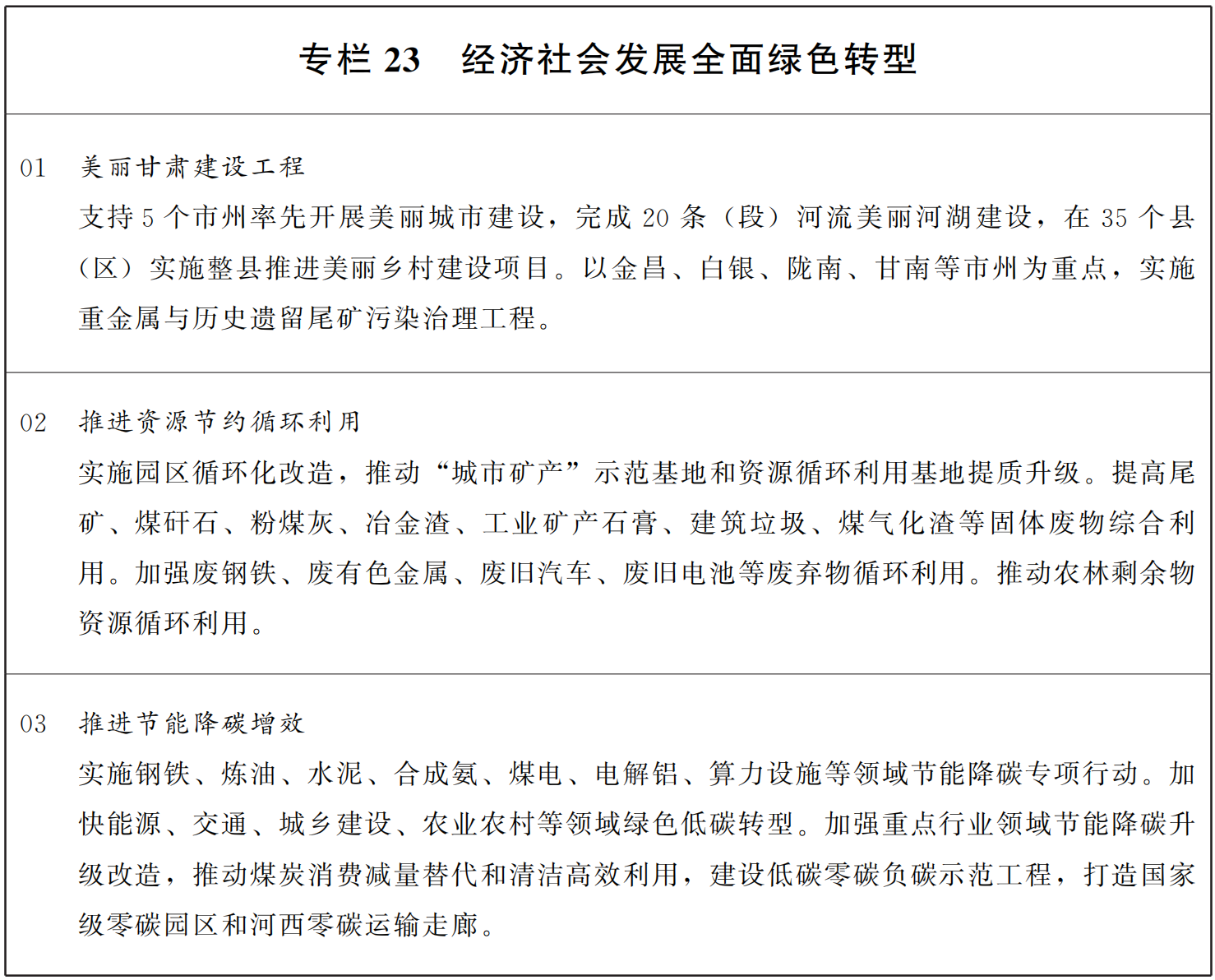 甘肃省国民经济和社会发展第十五个五年规划纲要