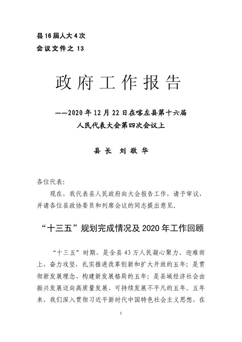 2021年朝阳市喀喇沁左翼蒙古族自治县政府工作报告—全文