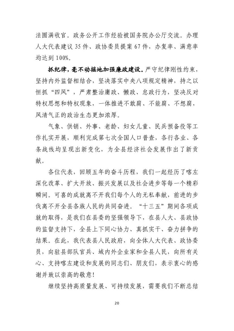 2021年朝阳市喀喇沁左翼蒙古族自治县政府工作报告