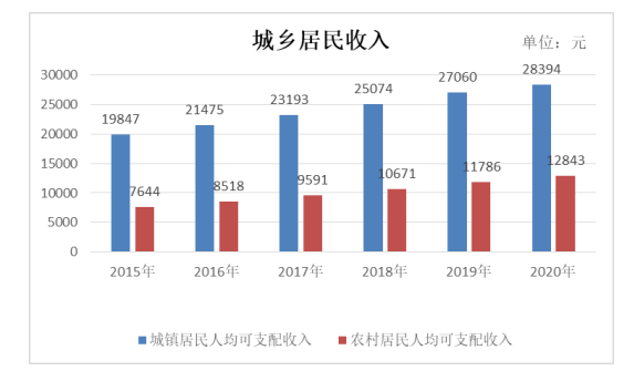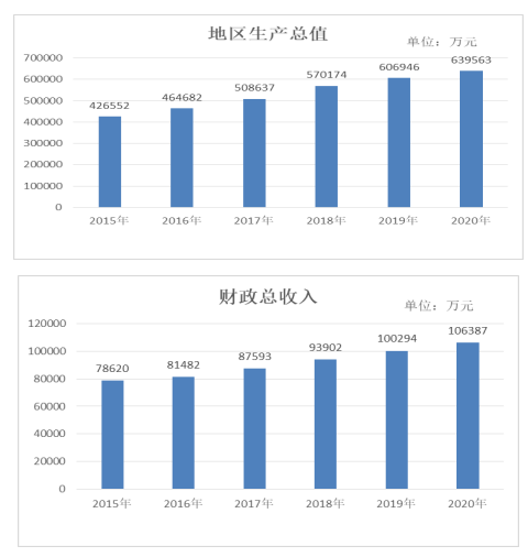 经济综合实力显著增强。2020年,全县生产总值完成63.96亿元,年均增长7.6%;全县财政总收入完成10.64亿元,年均增长超过6.2%;社会消费品零售总额完成23.42亿元,年均增长9.9%;城镇居民可支配收入28394元,农村居民可支配收入12843元,年均增长分别为7.4%和10.9%。“十三五”期间,全县投资驱动和消费拉动同步发展,经济总量稳定快速增长,综合实力显著增强。