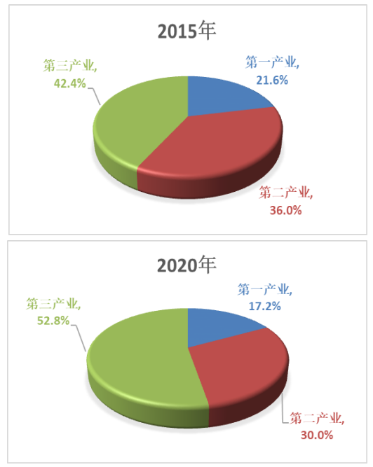 8 | 三产比例(%) | 21.6:36: 42.4 | 17.2:30:52.8 | 12:44.1:43.9 | — | — | 预期性 | 全面完成 | |