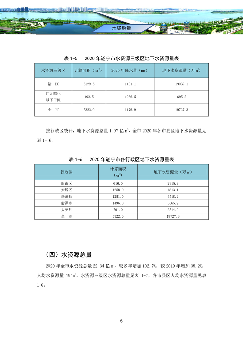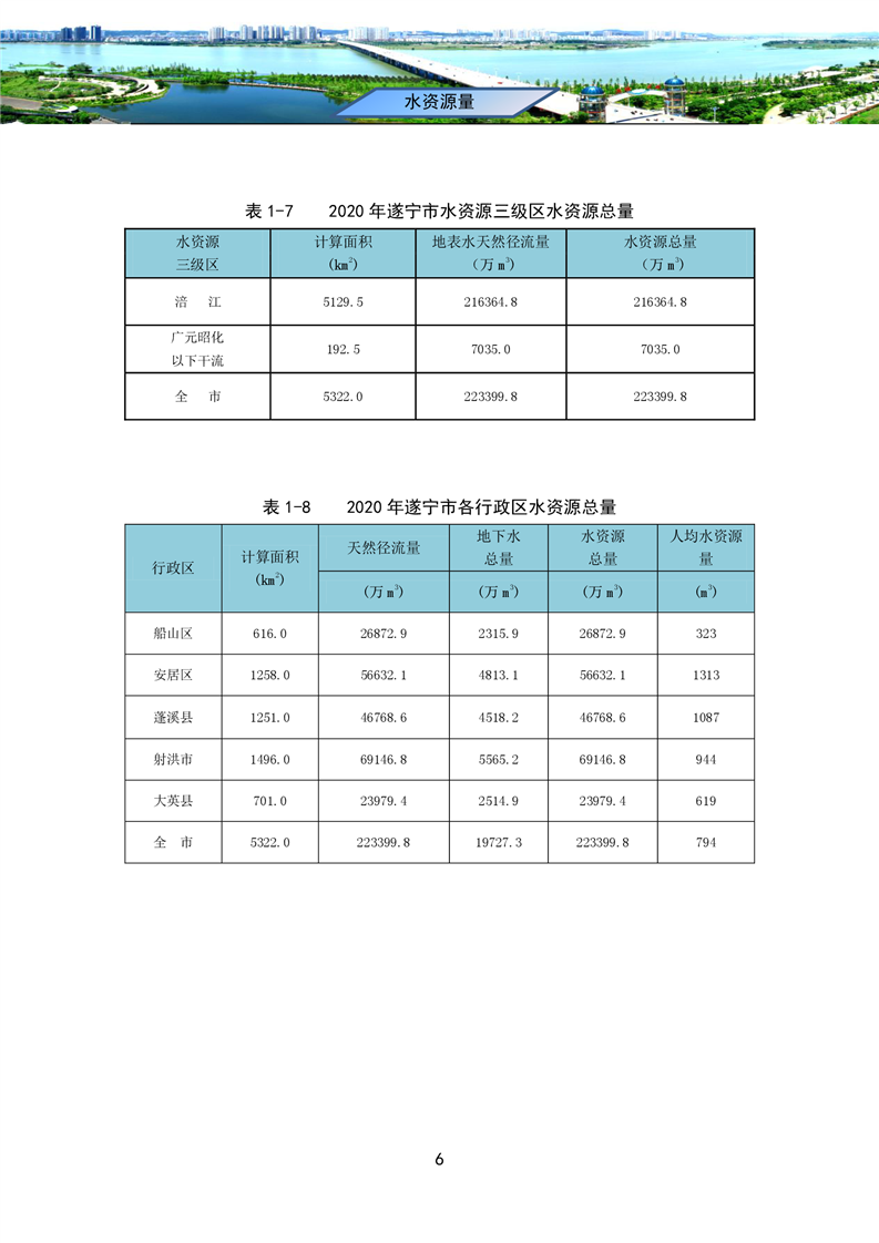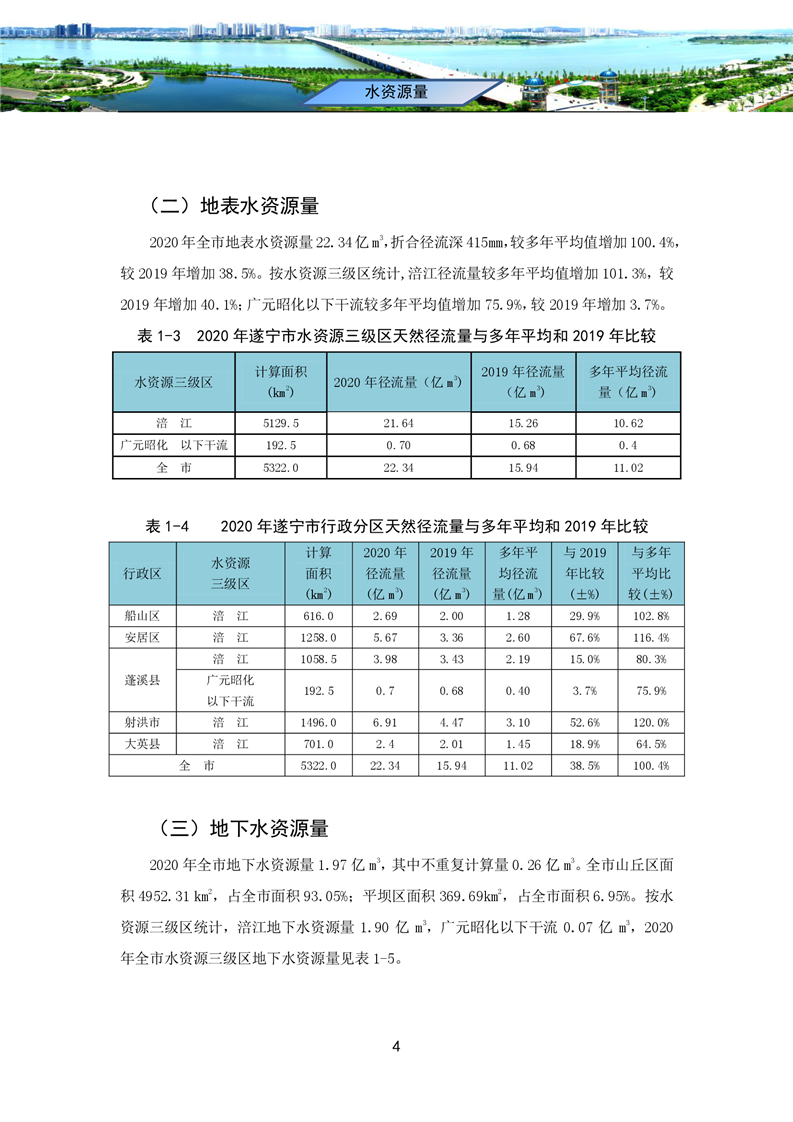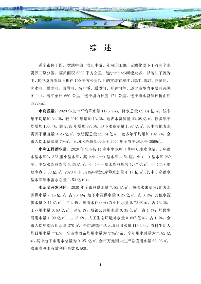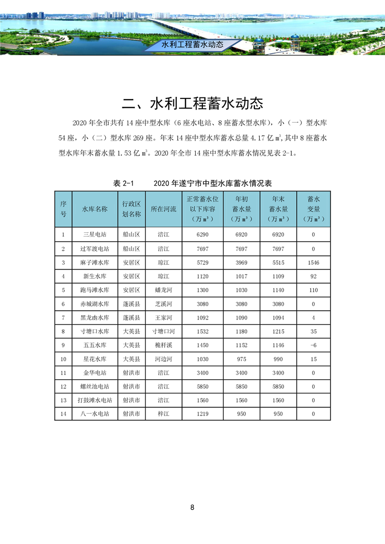 2020年四川省遂宁市水资源公报
