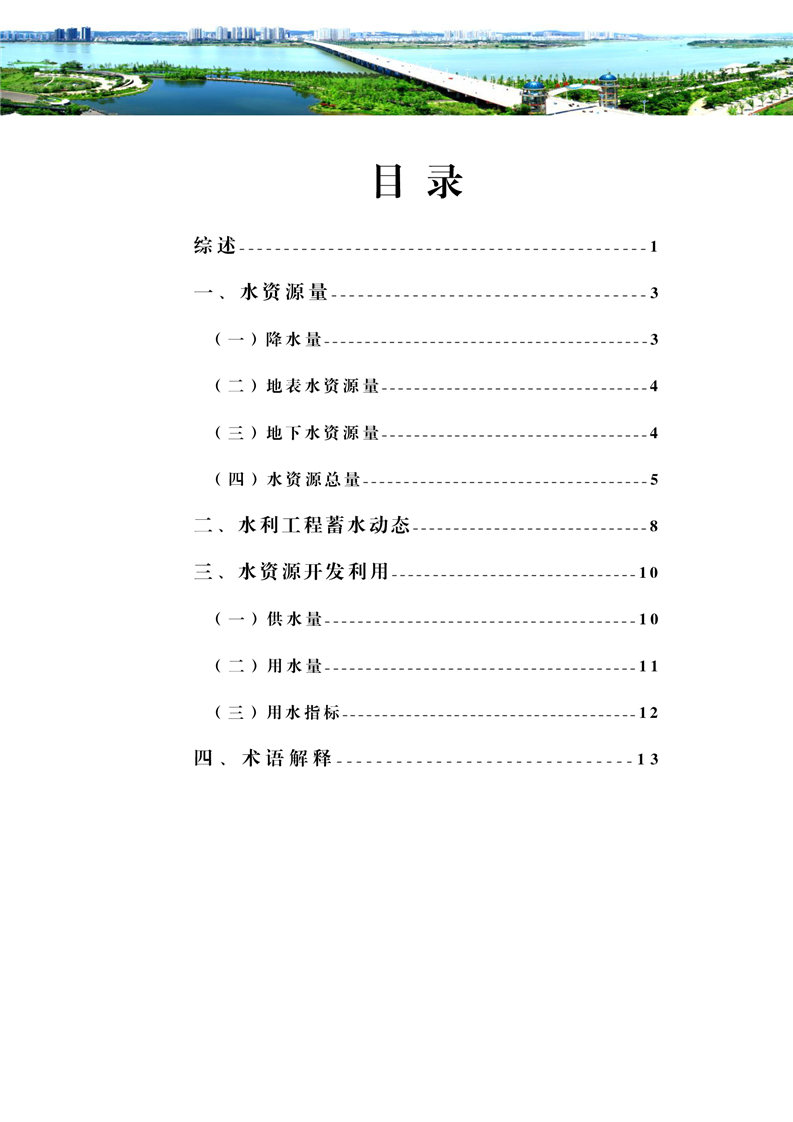 水资源开发利用∶2020年全市总供水量7.82亿m²,按供水来源分∶地表水源供水量7.46亿m3,占95.4%;地下水源供水量0.25亿m³,占3.2%;其他水源供水量0.11亿m²,占1.4%。按用水行业分∶农业用水量5.72亿m,占73.2%;工业用水量0.63亿m²,占8.1%;城镇公共用水量0.35亿m,占4.4%;居民生活用水量1.02亿m³,占13.0%;人工生态环境补水量0.097亿m³,占1.2%。全市人均年综合用水量278m3,全市城镇生活人均日用水量116L/d,农村生活人均日用水量77L/d,全市灌溉亩均用水量为379m/亩。全年用水总量为7.82亿m,其中地下水用水总量为0.25亿m;全市万元国内生产总值用水量62.03m;农田灌溉水有效利用系数0.508。