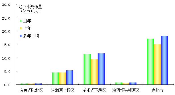 2011年全市入境水量8.25亿立方米,出境水量18.12亿立方米。2011年安徽省宿州市水资源公报 3.地下水资源量大牛工程师 2011年全市地下水资源量17.26亿立方米,其中平原区地下水资源量16.10亿立方米,山丘区地下水资源量1.332亿立方米,平原区与山丘区间重复计算水量0.175亿立方米。2011年全市地下水资源量与2010年相比,偏多14.2%,较多年平均偏少5.6%。工作报告_规划纲要_模版下载 废黄河以北区、沱濉河上段区、沱濉河下段区和浍河怀洪新河区2011年地下水资源量,依次为0.470亿立方米、4.552亿立方米、11.432亿立方米、0.806亿立方米,分别占全市总量2.7%、26.4%、66.2%、4.7%。资料库_模版下载_统计公报 本年度各水资源分区地下水资源量与上年和多年平均比较情况见表7、图9。大牛工程师 表7 2011年宿州市水资源分区地下水资源量与上年和多年平均比较文库_工作报告_报告模板 | 水资源分区大牛工程师 | 当年地下水大牛工程师 | 上年地下水大牛工程师 | 多年平均大牛工程师 | 与上年比较2011年安徽省宿州市水资源公报 (±%)2011年安徽省宿州市水资源公报 | 与多年大牛工程师 平均比较大牛工程师 (±%)2011年安徽省宿州市水资源公报 | 资源量工程咨询_工作报告_县域经济 | 资源量大牛工程师 | 地下水资源量2011年安徽省宿州市水资源公报 | (亿立方米)大牛工程师 | (亿立方米)模版下载_规划纲要_十四五 | (亿立方米)大牛工程师 | 废黄河以北区大牛工程师 | 0.4702011年安徽省宿州市水资源公报 | 0.418大牛工程师 | 0.416大牛工程师 | 12.6文库_规划纲要_十四五 | 13.12011年安徽省宿州市水资源公报 | 沱濉河上段区2011年安徽省宿州市水资源公报 | 4.552大牛工程师 | 4.633大牛工程师 | 5.363大牛工程师 | -1.82011年安徽省宿州市水资源公报 | -15.1大牛工程师 | 沱濉河下段区2011年安徽省宿州市水资源公报 | 11.432 统计公报_规划纲要_十四五 | 9.464资料库_工程资料_报告模板 | 11.7812011年安徽省宿州市水资源公报 | 20.82011年安徽省宿州市水资源公报 | -3.02011年安徽省宿州市水资源公报 | 浍河怀洪新河区大牛工程师 | 0.806大牛工程师 | 0.6032011年安徽省宿州市水资源公报 | 0.730大牛工程师 | 33.5工程资料_十四五_报告模板 | 10.4资料库_统计公报_工作报告 | 宿州市资料下载_工程资料_县域经济 | 17.262011年安徽省宿州市水资源公报 | 15.12大牛工程师 | 18.29统计公报_工作报告_模版下载 | 16.12011年安徽省宿州市水资源公报 | -5.6大牛工程师 |