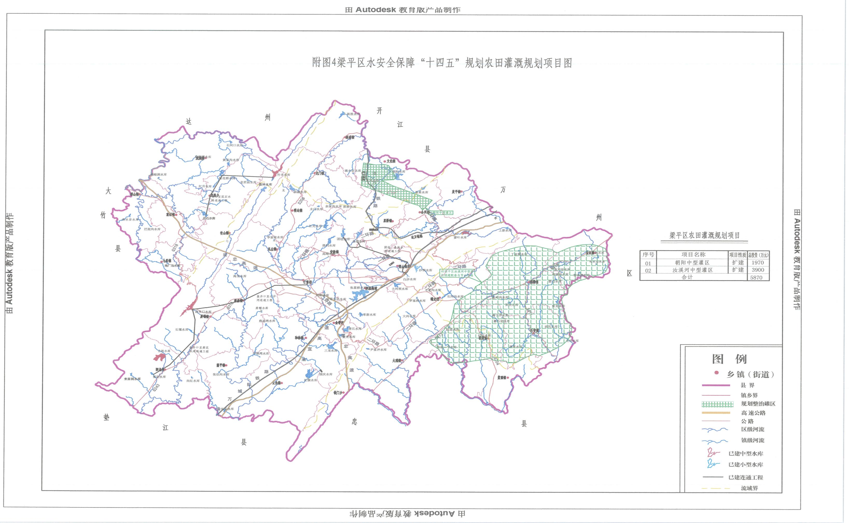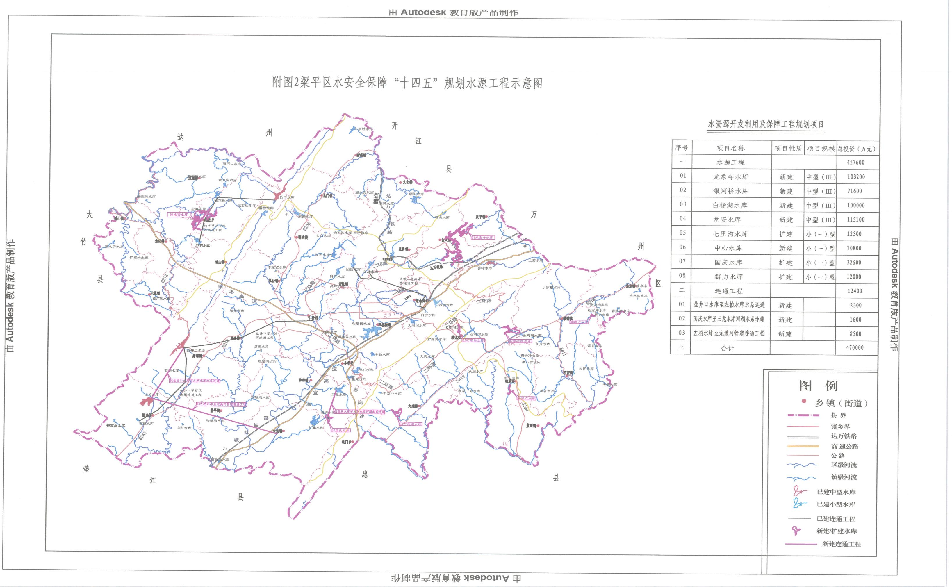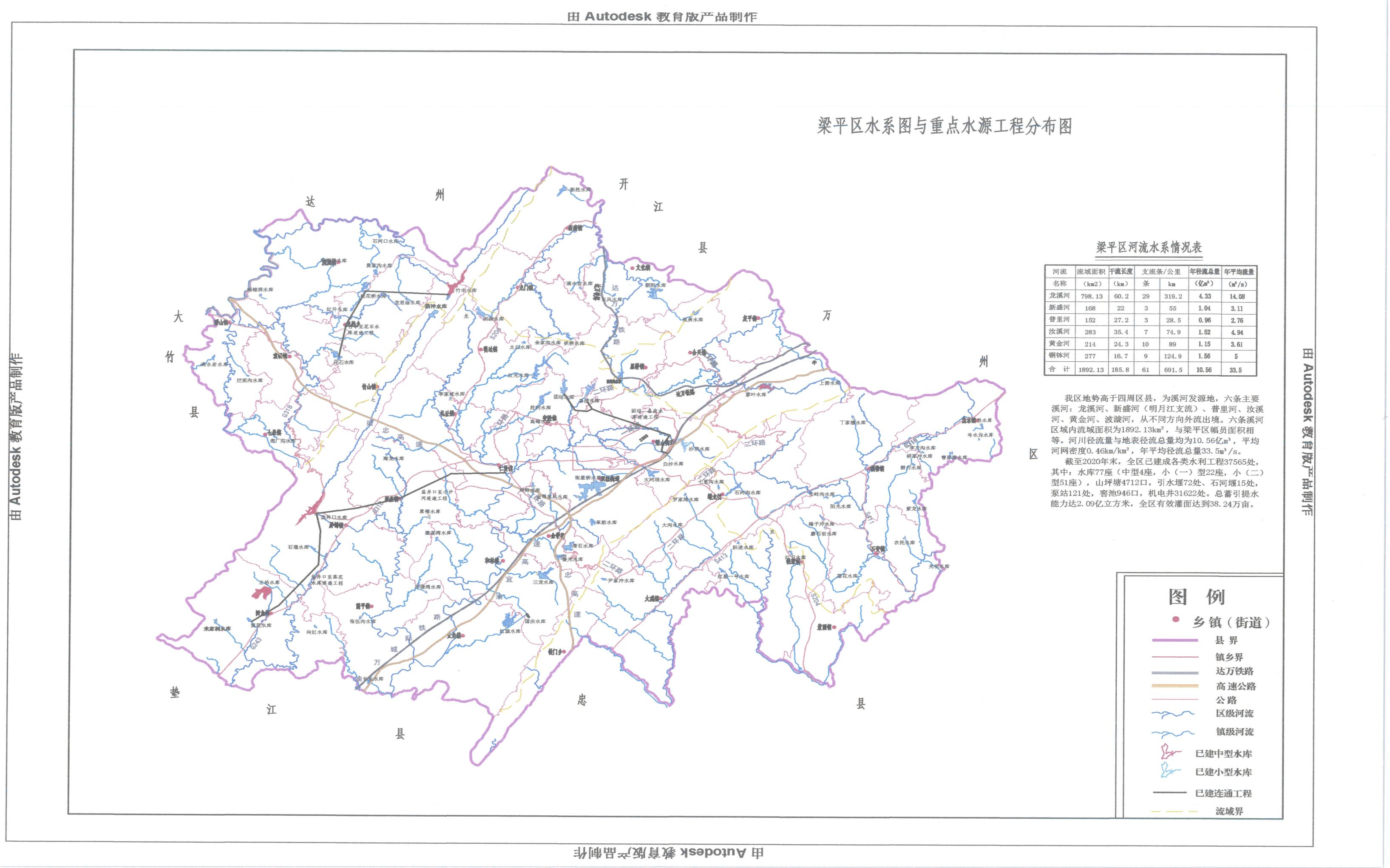 附图1梁平区水系图与重点水源工程分布图