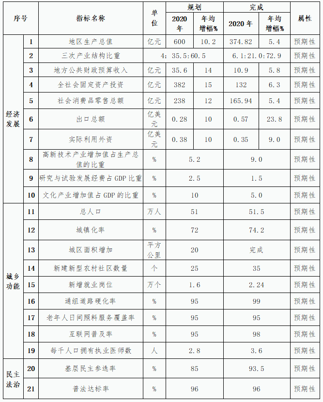 表1 襄城区“十三五”经济和社会发展主要指标完成情况表