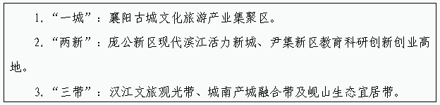 “三带”:即汉江文旅观光带、城南产城融合带、岘山生态宜居带。