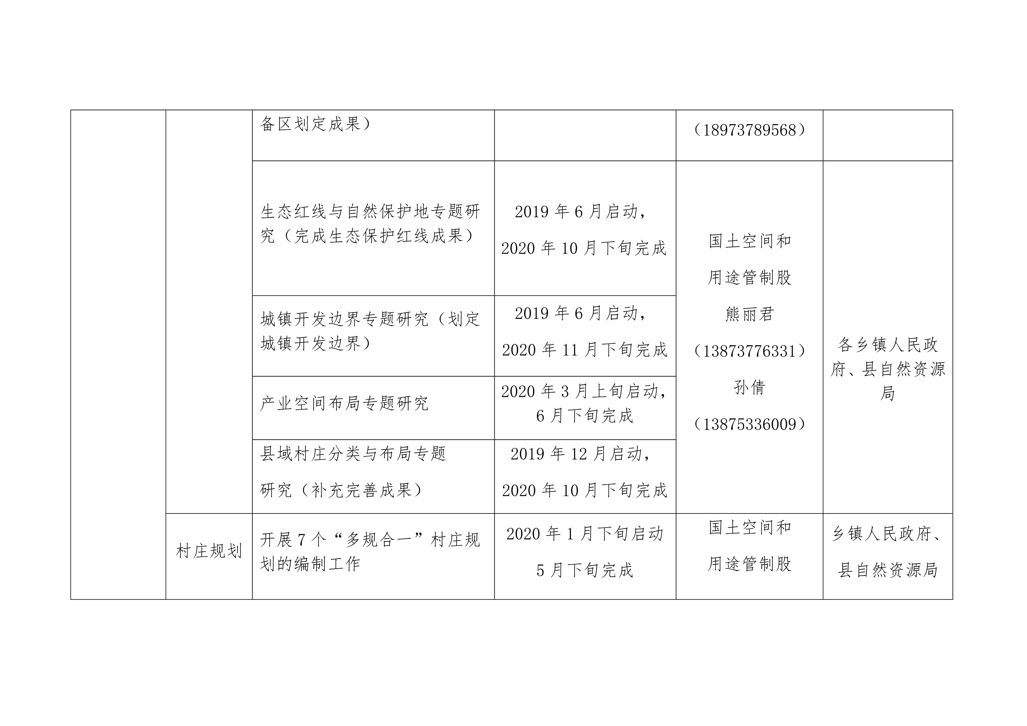 (5)12月底前有序完成县7个“多规合一”实用性村庄规划编制、上报审批及备案工作;