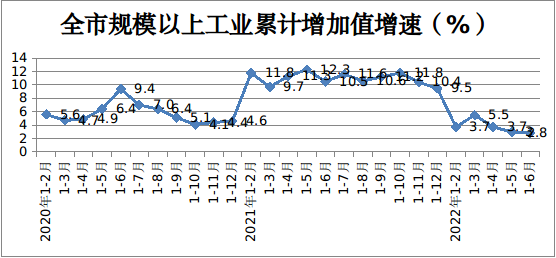 1-6月份,呼和浩特市规模以上工业增加值同比增长2.8%,增速较1-5月份回落0.2个百分点,较全区规模以上工业增加值增速低5.6个百分点,全市规模以上工业经济整体平稳运行。