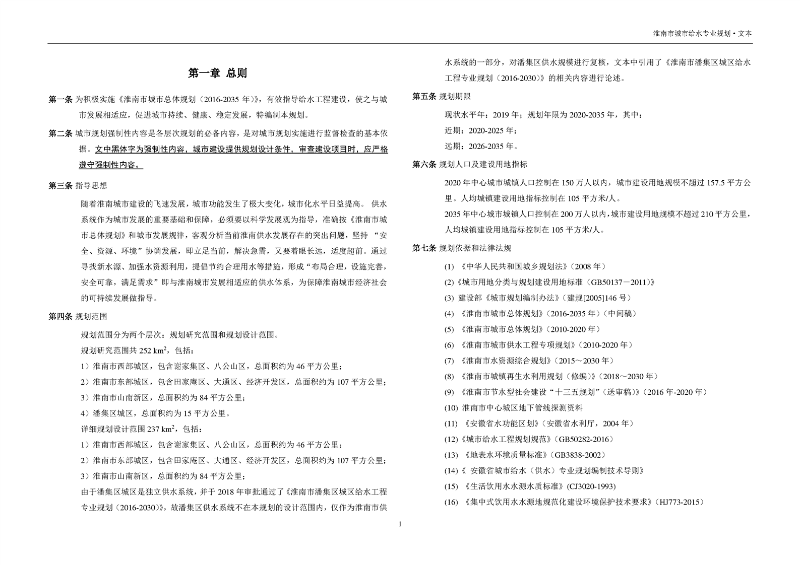 (淮南市)【中长期发展规划】淮南市城市给水专业规划(2020-2035年)