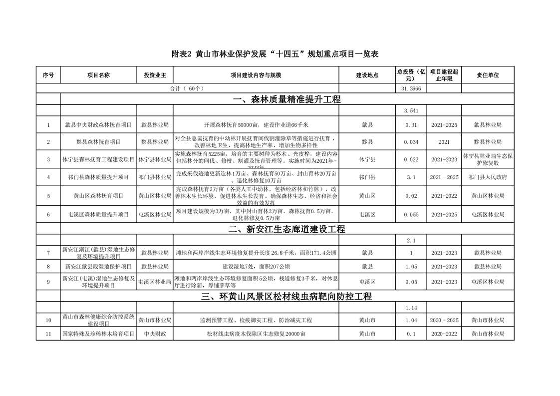 黄山市林业保护发展“十四五”规划